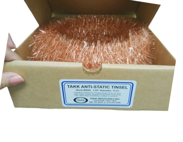 几十年的成功经验证明除静电铜丝是有效的、低成本、低维护的无源静电消除器。TAKK除静电铜丝是由高品质纯铜制成,中心部分是铜线,确保优良的接地性能及强度,细薄端尖的铜丝缕提供了更强的静电消散性能。