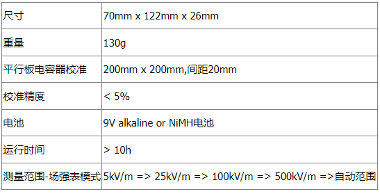 1.静电场强范围500KV/m,高精度5%,高分辨率0.5V@ 1cm。