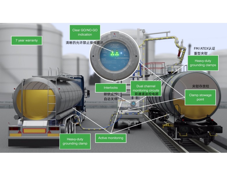 根据国际标准指南和/或推荐实践的要求,有时需要同时将一个或两个工厂设备接地,并要监控两个接地电阻均小于 10 欧姆。Earth-Rite DGS 是同时将两辆散装运输车辆或其他设备接地的理想解决方案。