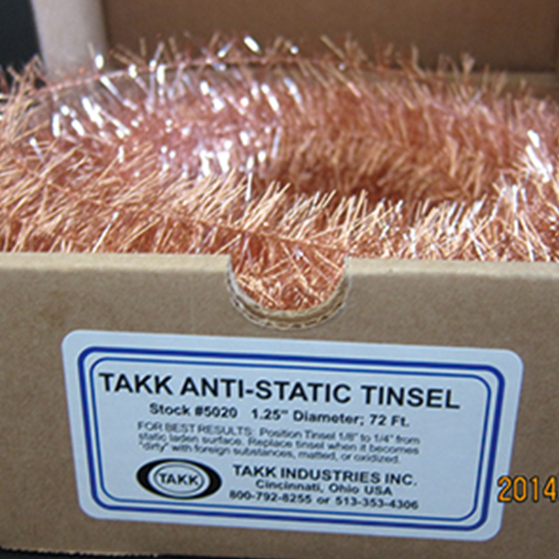 几十年的成功经验证明除静电铜丝是有效的、低成本、低维护的无源静电消除器。TAKK除静电铜丝是由高品质纯铜制成,中心部分是铜线,确保优良的接地性能及强度,细薄端尖的铜丝缕提供了更强的静电消散性能。